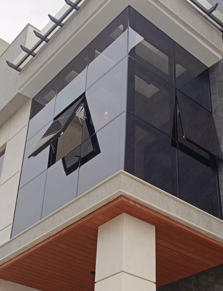 تتميز الواجهة بعدم وضوح قواطع الألمونيوم من خارج المبنى يتم تركيبها بنظام بريتال البريطاني يمكن تنفيذها في الواجهات الدائرية والمقوسة ويمكن تنفيذها على حسب التصميم للمبنى يمكن اضافة أبواب ونوافذ للواجهة